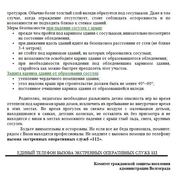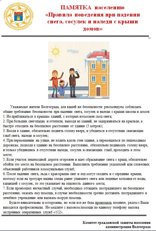 Правила поведения при падении снега, сосулек и наледи с крыши домов
