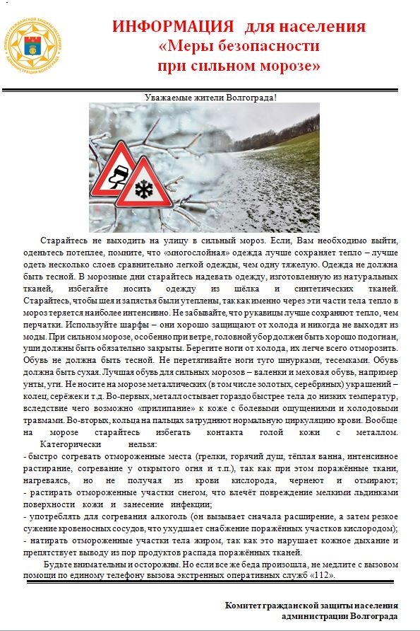 Меры безопасности при сильном морозе
